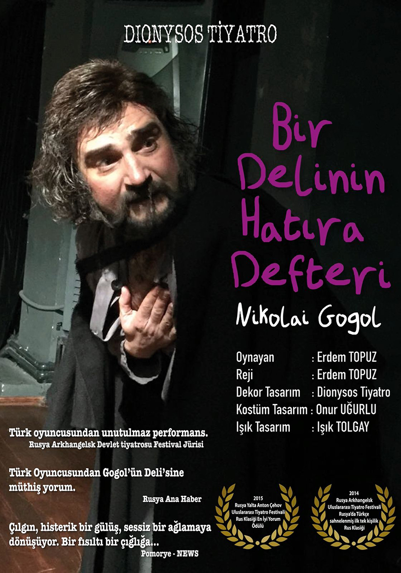 Ödüllü oyuncu ve yönetmen Erdem Topuz, büyük Rus klasiği “Bir Delinin Hatıra Defteri”ni günümüzle buluşturmaya devam ediyor. 21. yılında sahnelenen oyun, Topuz’un kurucu ortağı olduğu Dionysos Tiyatro çatısı altında izleyicilerle buluşuyor ve Poprişçin’in küçük karanlık dünyasını modern hayatın derin anlam boşluklarıyla ilişkilendiriyor.