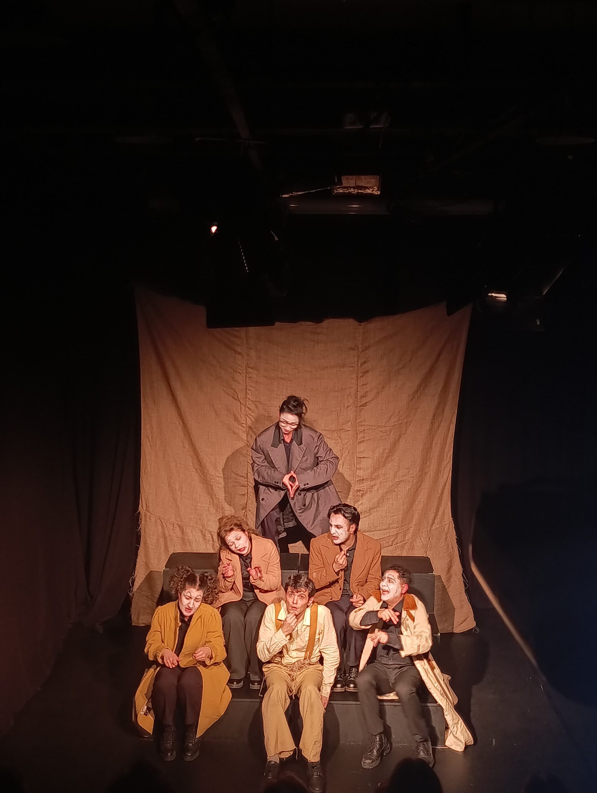 Oyunun ilk anlarında salondan gelen gülüşleri duyduk. Özellikle Akakiy dışındaki karakterlerin abartılı bedenleri, mekanik konuşmaları ve ritmik tekrarları seyircide bir komik etki yaratıyordu. Bu bizim istediğimiz bir başlangıçtı. Çünkü seyircinin o dünyaya “gülerek” girmesi, sonrasında yaşayacağı kırılmayı daha görünür kılıyor.